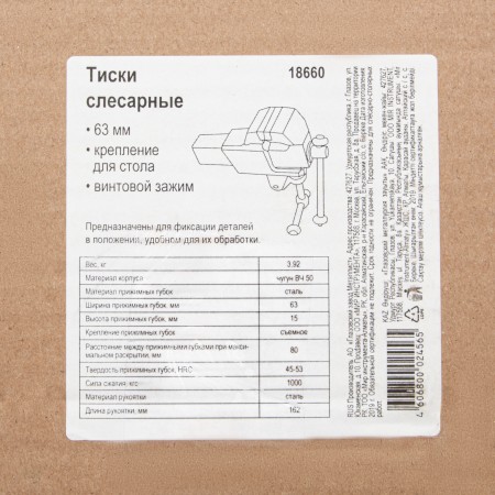 Тиски слесарные, 63 мм, крепление для стола, винтовой зажим (Глазов) Россия