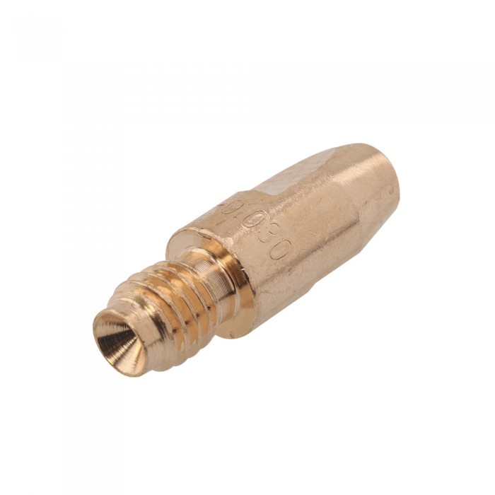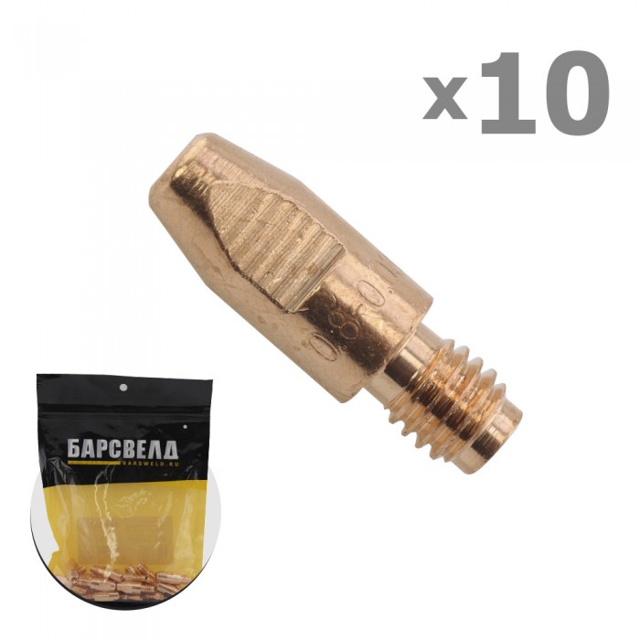 Контактный токосъемный наконечник БАРСВЕЛД E-Cu с резьбой М8, под проволоку диаметром 0,8 мм - расходная деталь полуавтоматических MIG/MAG горелок. Изготавливаются из меди, тем самым обеспечивается их надежность, высокая электропроводность, теплопроводность и самое низкое удельное сопротивление.