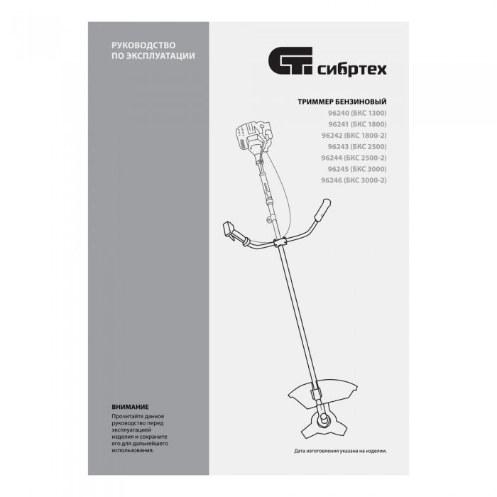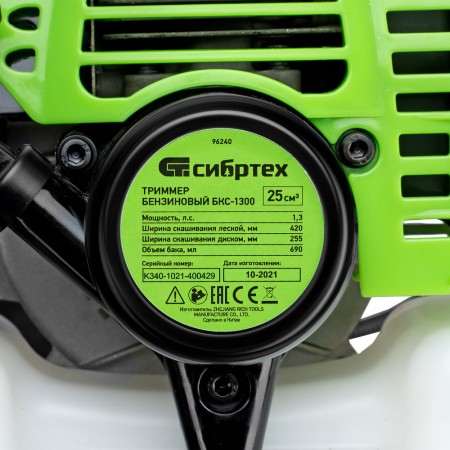 Триммер бензиновый БКС 1300, 25 см3, 1.3 л. с, неразъемная штанга, состоит из 2 частей Сибртех (96240)
