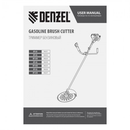 Триммер бензиновый DT 43S, 43 см3, 2.5 л. с, разъемная штанга, состоит из 2 частей Denzel (96225)