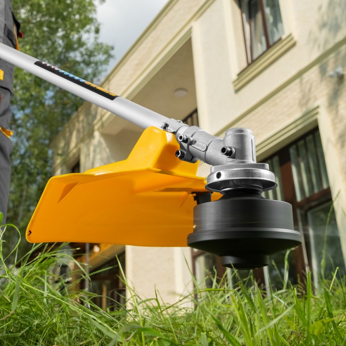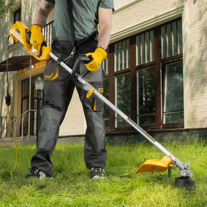 Триммер электрический TE-1200, 1200 Вт, 380 мм, катушка + диск, разборная штанга Denzel (96611)