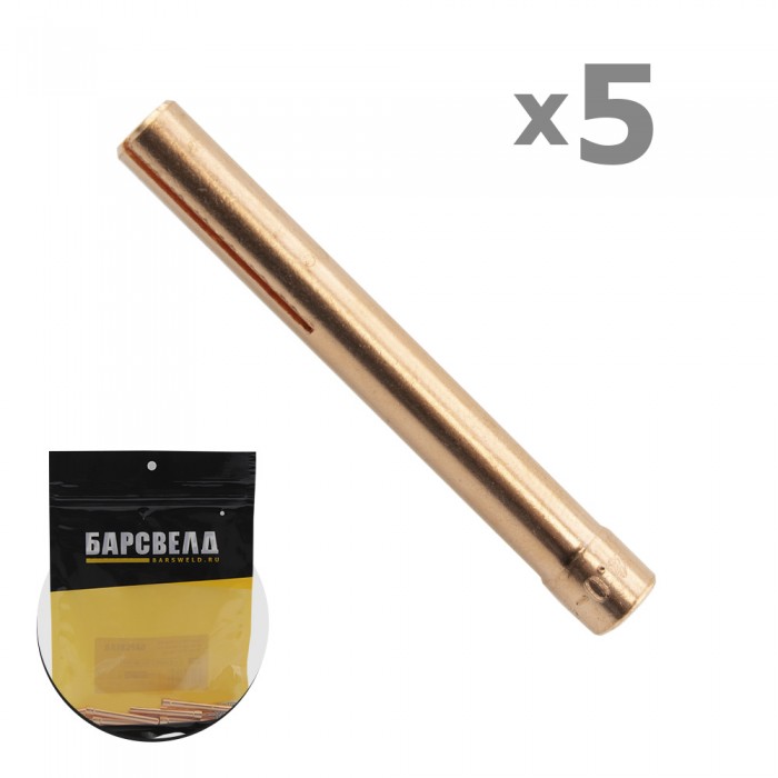 Цанга БАРСВЕЛД ф 4,0 мм используется для фиксации вольфрамового электрода в головке аргонодуговой горелки. Она без проблем устанавливается на горелки серии SR 17, 18, 26 и 400, обеспечивая надежную фиксацию электрода диаметром 4,0 мм.