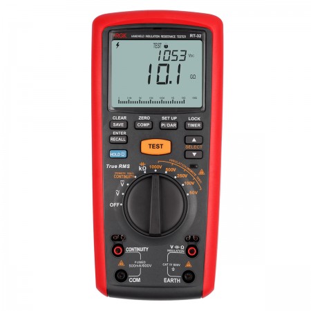 По сравнению с RT-30 были существенно расширены возможности, напрямую не связанные с инфекциями изоляционных материалов. К режимам прозвонки и замера напряжения добавились функции определения частоты тока, емкости конденсаторов и тока утечки. Кроме того, в этой модификации расширен рабочий диапазон измерения сопротивления. Благодаря такому функционалу измеритель сопротивления изоляции RGK RT-32 может частично заменить мультиметр.