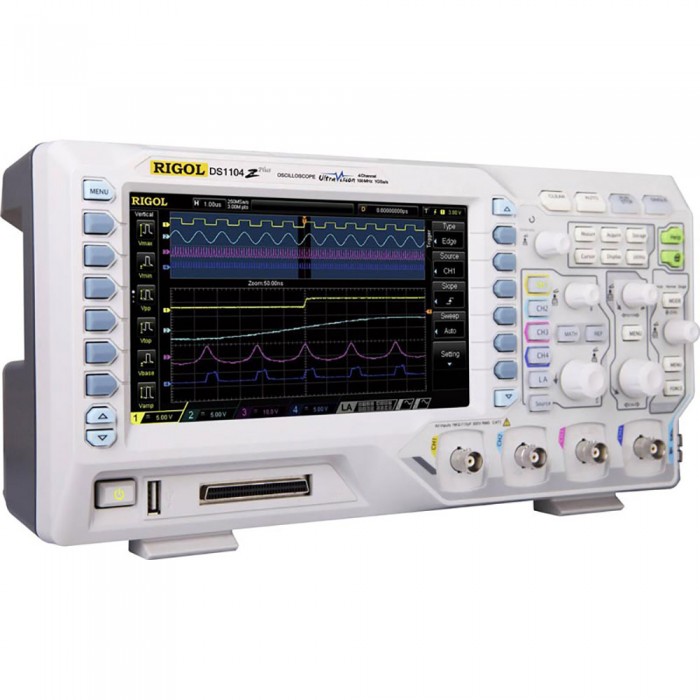 Цифровой осциллограф RIGOL DS1104Z Plus идеально подходит для производственных тестов, обслуживания в процессе эксплуатации, исследований и всех видов работ, в которых используются аналоговые/цифровые тесты и поиск неполадок, а также для образовательных целей.