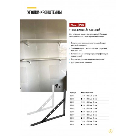 Уголок-кронштейн усиленный белый 200х150 мм (66103)