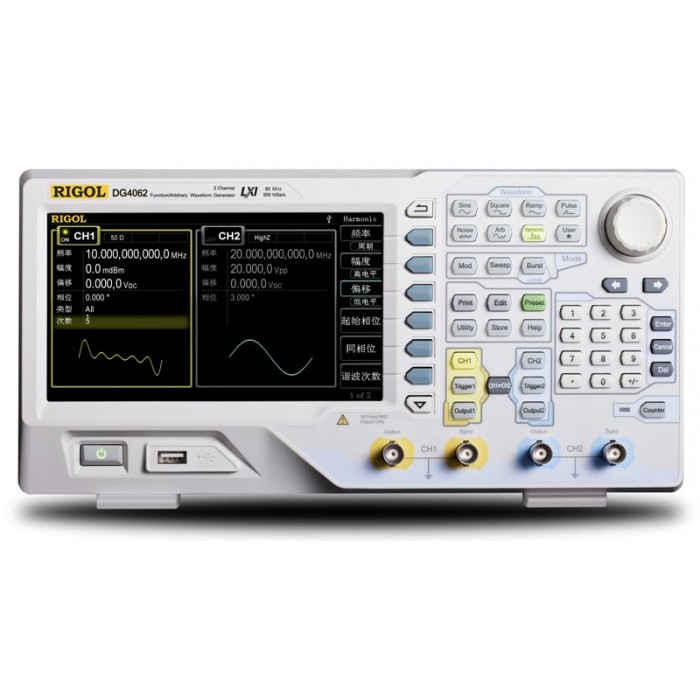 Универсальный генератор сигналов Rigol DG4062 использует технологию прямого цифрового синтеза (DDS) и сочетает в себе множество функций: генератора сигналов произвольной формы, функционального генератора, генератора гармоник, аналогового и цифрового модулятора и частотомера. В генераторе сигналов Rigol DG4062 имеется два полностью идентичных канала с полной точной подстройкой фазы. Большое количество встроенных форм сигналов и видов модуляции делают генератор сигналов Rigol DG4062 мощным инструментом для использования в измерительных задачах различной сложности.