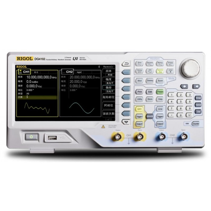 Универсальный генератор сигналов Rigol DG4102 использует технологию прямого цифрового синтеза (DDS) и сочетает в себе множество функций: генератора сигналов произвольной формы, функционального генератора, генератора гармоник, аналогового и цифрового модулятора и частотомера. В генераторе сигналов Rigol DG4102 имеется два полностью идентичных канала с полной точной подстройкой фазы. Большое количество встроенных форм сигналов и видов модуляции делают генератор сигналов Rigol DG4102 мощным инструментом для использования в измерительных задачах различной сложности.