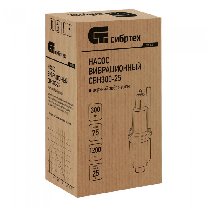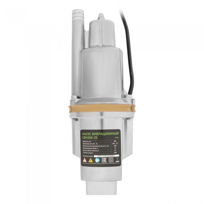 Вибрационный насос СВН300-25, верхний забор, 300 Вт, напор 75 м, 1200 л/ч, кабель 25 м Сибртех (99303)
