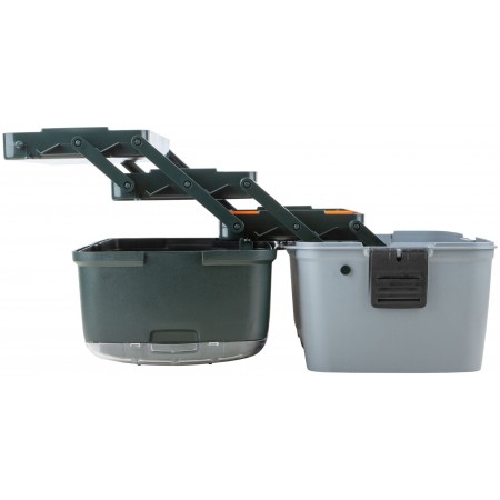 Пластиковый. Раздвижной механизм с 3-мя кантилеверами (лотками) внутри и 2-мя органайзера на крышке.