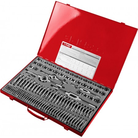 Набор предназначен для резьбонарезных работ в конструкциях и заготовках из сталей и цветных металлов. Метчики ручные однопроходные используются для нарезания внутренней метрической резьбы с нормальным и мелким шагом в глухих и сквозных отверстиях. Плашки предназначены для нарезания внешней метрической резьбы с нормальным и мелким шагом. Метчикодержатель предназначен для надежного закрепления метчиков Плашкодержатель используется для закрепления плашек при проведении резьбонарезных работ