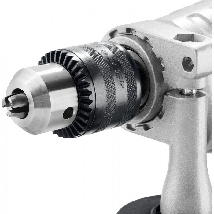 Незаменимый помощник для сверления отверстий в различных материалах (дерево, сталь и т. д.). Благодаря микроудару подходит для алмазного сверления. Профессионального уровня дрель с металлическим корпусом, двухскоростным редуктором, качественным кулачковым патроном, плавной регулировкой оборотов и надежной конструкцией на подшипниках - лучший подарок мастеру. Функция сверления с ударом, широкий диапазон регулировки частоты вращения, удобная дополнительная рукоятка - все, что нужно для качественной работы