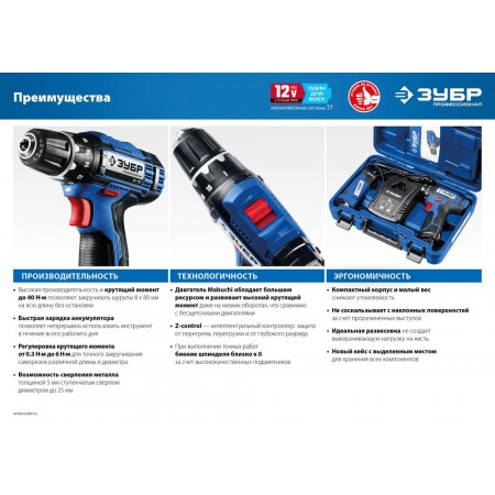 Источник питания для шуруповерта ЗУБР позволит Вам работать с полной отдачей. Современные Li-Ion элементы профессионального качества гарантируют превосходные технические характеристики, надежность и результат