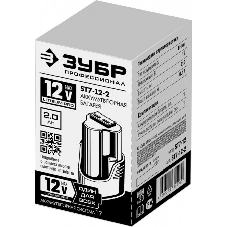 Аккумулятор 12 В 2.0 А·ч тип Т7 Профессионал ЗУБР ST7-12-2