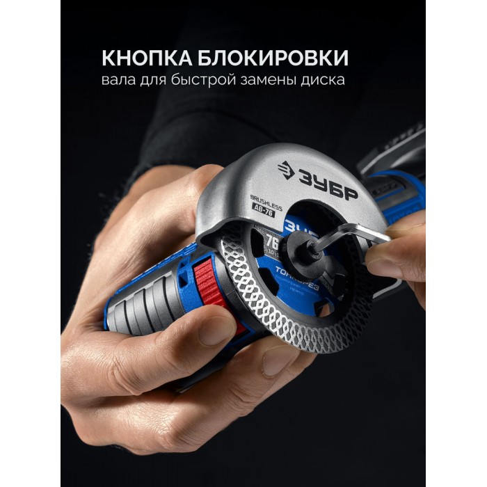 - защита от повторного пуска при установке батареи с включенным выключателем - Быстрый тормоз вала для сокращения выбега при выключении
