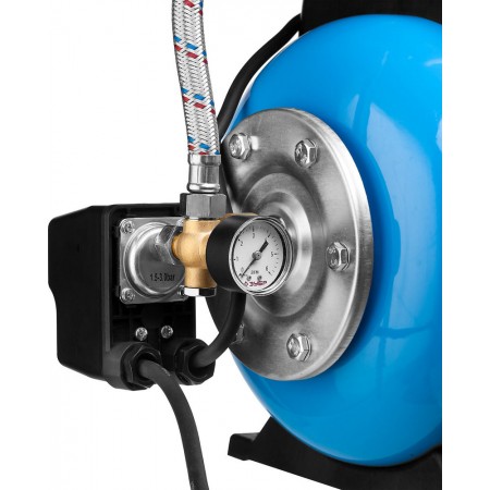 - Объем гидроаккумулятора 20 л обеспечивает полноценный водоразбор с более редкими включениями насоса, что продлевает срок его службы и способствует экономии электроэнергии