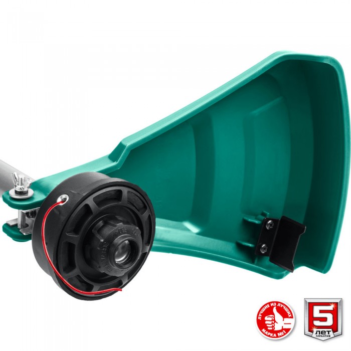 - Мощный двигатель и леска диметром 2 мм нож позволят косить даже грубую растительность