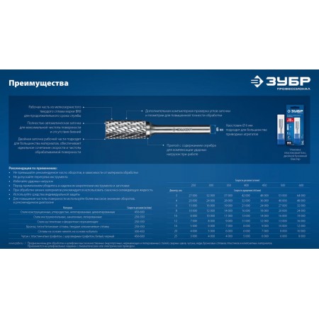 Твердосплавные борфрезы ЗУБР обеспечивают высокую производительность и могут использоваться для обработки различных материалов