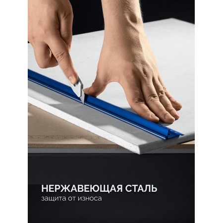 Обеспечивает ровные линии при резке и разметке благодаря стальной направляющей. Универсальный инструмент для любого производства.