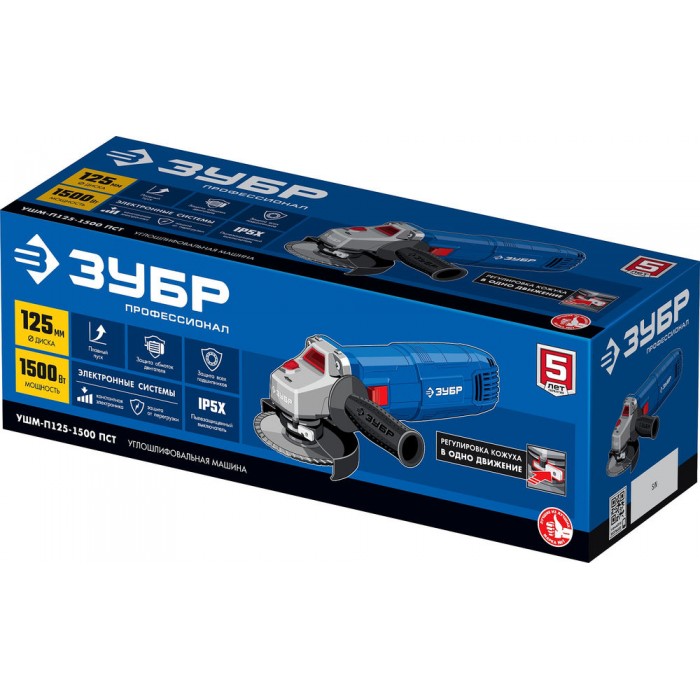 Одноручная УШМ с одной из самых больших в линейке машин ЗУБР мощностью 1500 Вт с набором электронных систем наиболее эффективна для всех видов работ - резки металла, кирпича, керамики, зачистки, шлифовки и обдирки. Удобная эргономика (малый диаметр корпуса под хват, быстрая регулировка кожуха), а также низкие уровень шума и вибрации делают высокопроизводительную работу еще и комфортной