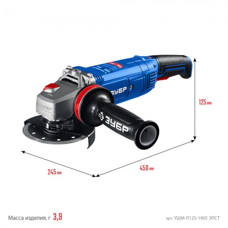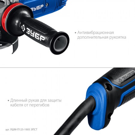 Двуручная УШМ с максимальной в линейке машин ЗУБР 125 мм мощностью 1900 Вт и регулировкой оборотов максимально эффективна для всех видов работ - резки металла, кирпича, керамики, зачистки, шлифовки и обдирки. Электронные системы защиты пользователя и изделия, а также антивибрационная рукоятка для эффективного гашения вибрации