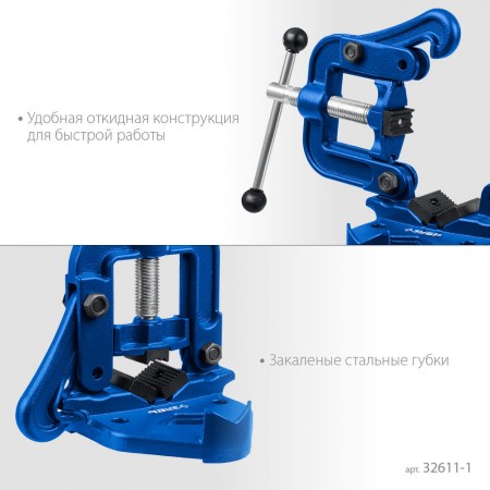 Рельефная поверхность губок для надежного и безопасного крепления труб