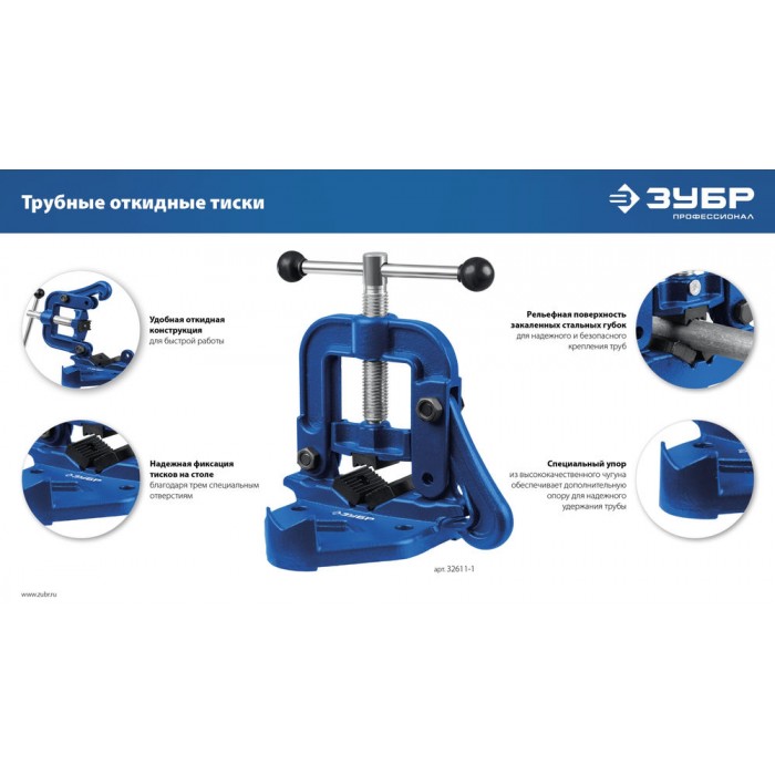 Тиски слесарные ЗУБР изготовлены высококачественного чугуна, соответствуют самым высоким техническим требованиям. обеспечивают длительную и качественную работу Предназначены для надежной фиксации труб.