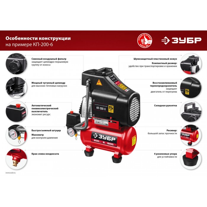 Качественное и надежное переносное оборудование для периодических работ дома, на даче, в небольшой мастерской, а так же для регулярной очистки от пыли офисной и бытовой техники . Безмасляный компрессор - это чистый, без примесей масла, воздух на выходе. При правильной эксплуатации ресурс данных компрессоров составляет не менее 1000 часов*. * на основании результатов испытаний лаборатории компании АО «ЗУБР ОВК»