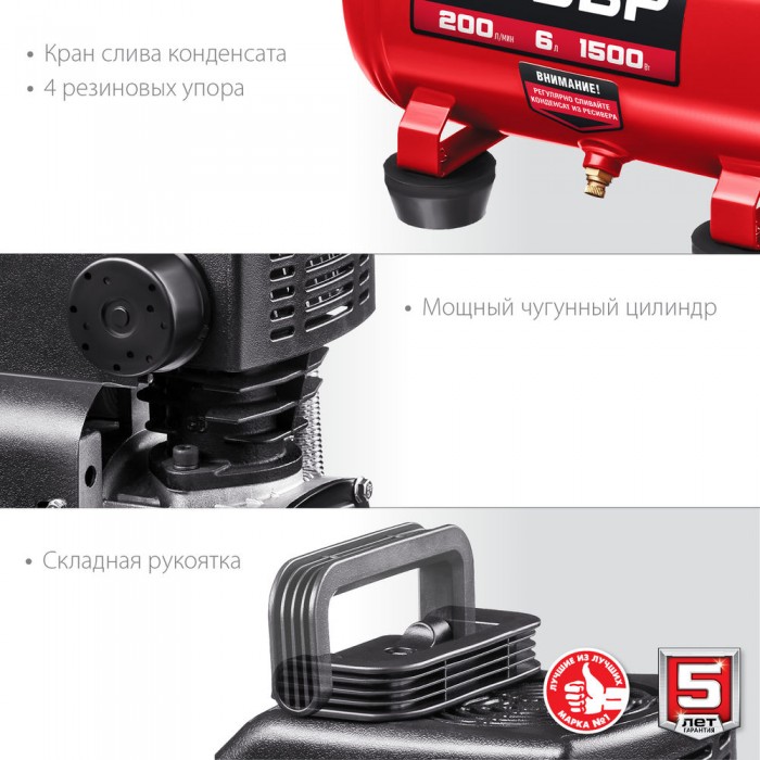 Качественное и надежное переносное оборудование для периодических работ дома, на даче, в небольшой мастерской, а так же для регулярной очистки от пыли офисной и бытовой техники . Безмасляный компрессор - это чистый, без примесей масла, воздух на выходе. При правильной эксплуатации ресурс данных компрессоров составляет не менее 1000 часов*. * на основании результатов испытаний лаборатории компании АО «ЗУБР ОВК»