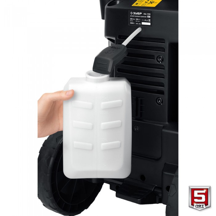 • Сменные быстросъемные насадки с различными углами распыления для формирования струи различного давления, а также нанесения моющего средства:
