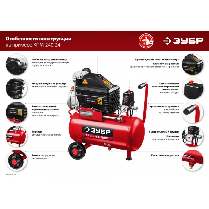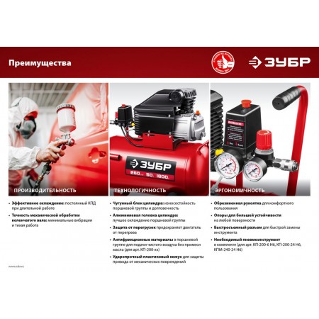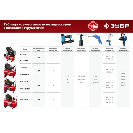 Производительные и надежные универсальные аппараты, которые помогут Вам во время работы в мастерской, Высокая производительность, возможность регулирования расхода воздуха и автоматический режим работы изделия позволяют работать без простоев. В комплект входит набор пневмоинструментов для проведения широкого спектра работ. При правильной эксплуатации в соответствии с рекомендациями производителя ресурс данных компрессоров – не менее 2500 часов*. * на основании результатов испытаний лаборатории компании АО «ЗУБР ОВК»