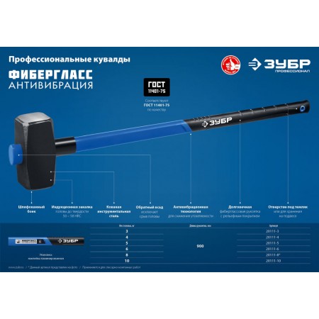 Профессиональная кувалда ЗУБР оснащена особопрочной фибергласовой рукояткой. АВТ - технология позволяет существенно снизить вибрации, возникающие во время удара, что делает работу с инструментом более комфортной. Соответствует требованиям ГОСТ 2310-77.