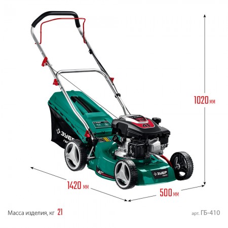 - Колеса увеличенного диаметра на подшипниках и эргономичная рукоятка облегчают перемещение косилки по газону