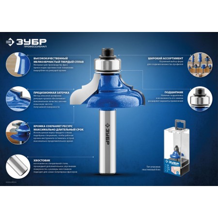 Фреза кромочная калевочная №1 44.5?21.5 мм радиус 15.9 мм ЗУБР Профессионал 28700-44.5