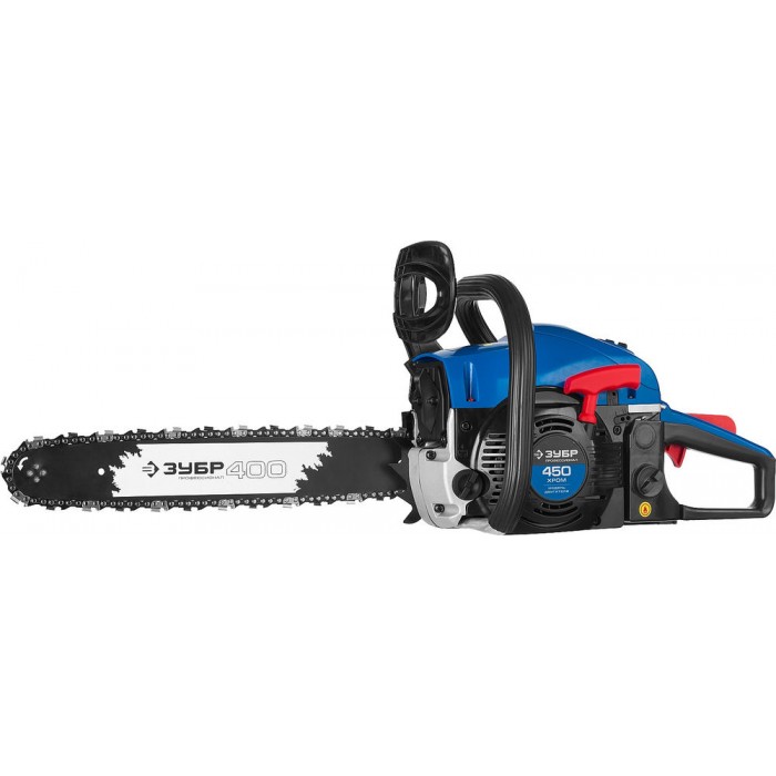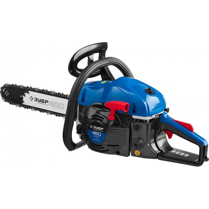 Идеальный вариант для пиления досок, бруса, стволов различных пород дерева на дачном участке. В отличие от электрической, бензиновая пила оснащена более мощным двигателем, безопасна в отношении поражения электрическим током, может работать в любую погоду и в любом месте. Функции легкого запуска, автоматической смазки цепи и эффективная антивибрационная защита делают пилу легкой в обращении и комфортной в работе. Двойной тормоз цепи, приводимый в действие при откидывании защитного щитка или при отпускании клавиши блокировки на рукоятке, а также встроенный цепеуловитель и металлический упор делают пилу безопасной в применении. Большая удельная мощность, высокое качество применяемых материалов и изготовления, обеспечивающие увеличенный ресурс, делают бензиновую пилу ЗУБР Вашим лучшим помощником