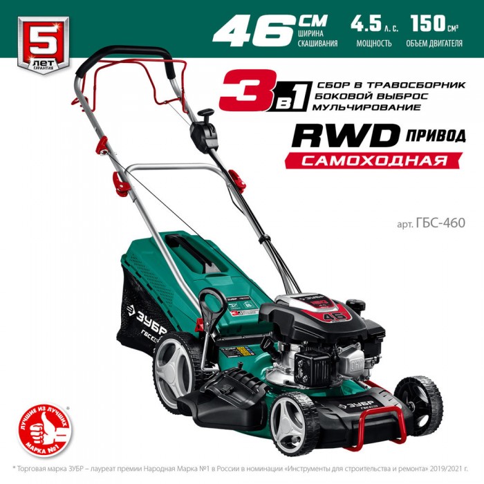 Для подстригания травы при уходе за газоном (с приводом режущего инструмента от двигателя внутреннего сгорания). Имеет функции кошения, мульчирования и выброса травы в сторону. Изделие предназначено для эксплуатации только вне помещений.