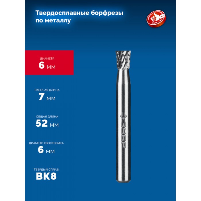 Твердосплавные борфрезы ЗУБР обеспечивают высокую производительность и могут использоваться для обработки различных материалов