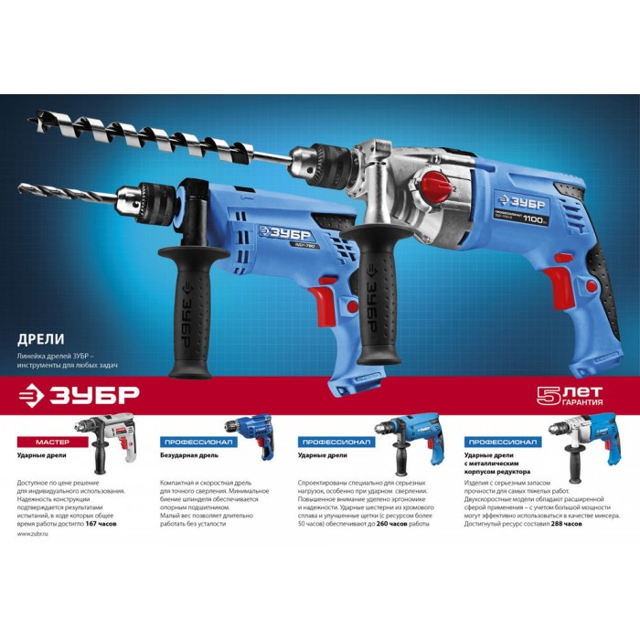 - Ограничитель глубины сверления позволяет бурить точно на заданную глубину при серийной работе