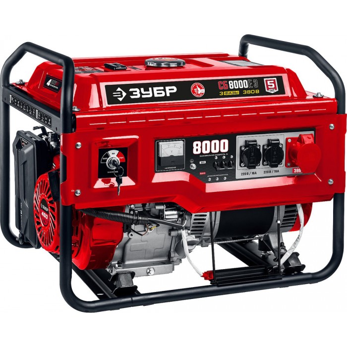 Оптимальный по мощности генератор с возможностью подключения трехфазного потребителя электроэнергии. Электрозапуск генератора избавит Вас от приложения физической силы, а комплект для транспортировки генератора упрощает его перемещение. Аккумуляторная батарея не входит в комплект поставки. Емкость батареи не менее 14 А*ч.