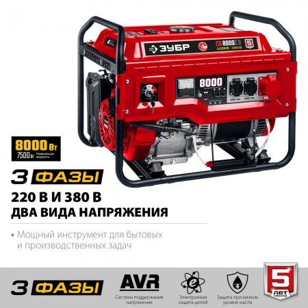 - Два вида вырабатываемого напряжения - 220В 50Гц и 380В 50Гц