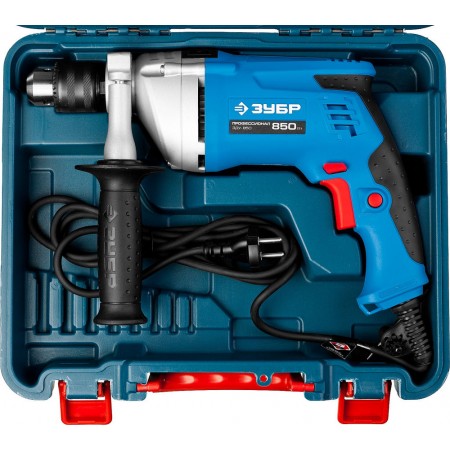 - Надежное удержание дрели благодаря обрезиненной основной и удобной дополнительной рукояткам