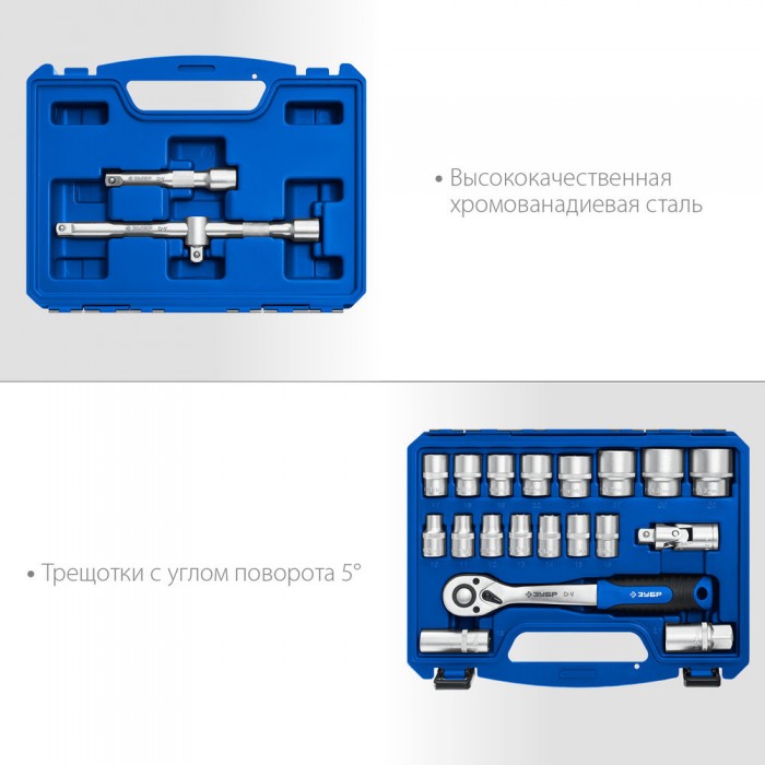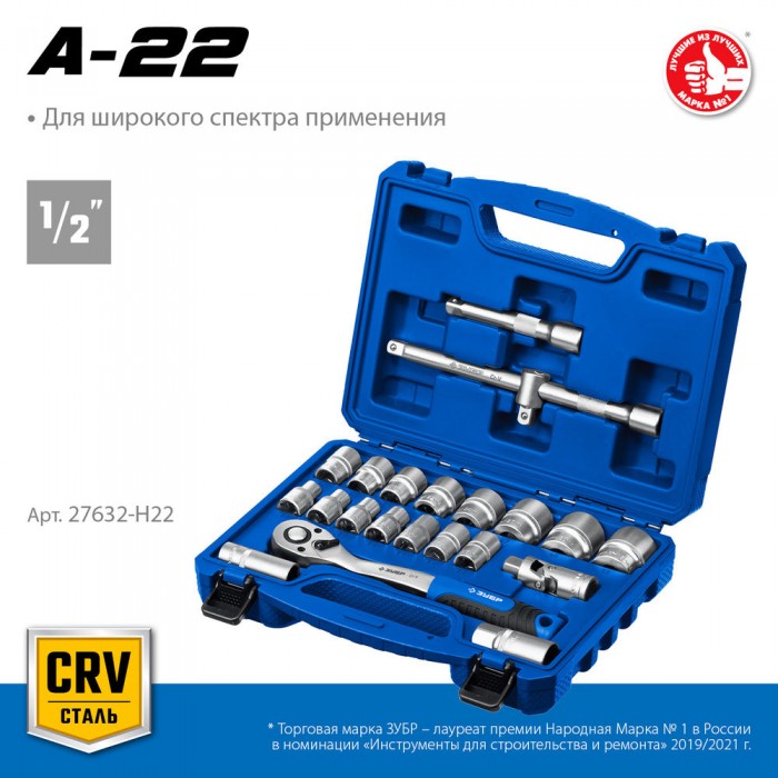 Универсальный набор инструмента 22 предм. А-22 (1/2") Профессионал ЗУБР 27632-H22
