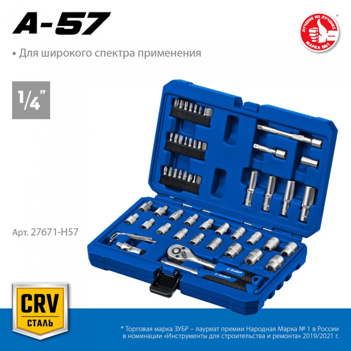 Универсальный набор инструмента 57 предм. А-57 (1/4") Профессионал ЗУБР 27671-H57