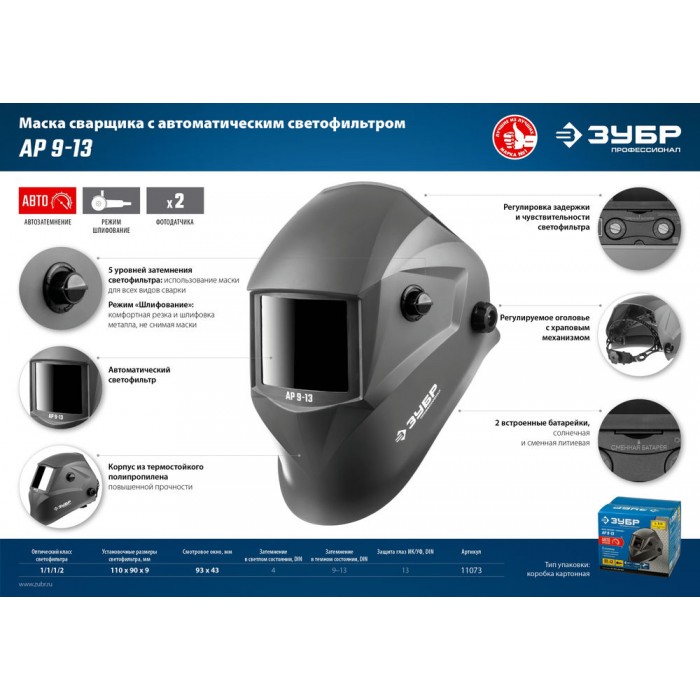 Сварочная маска ЗУБР предназначена для индивидуальной защиты головы, глаз и лица сварщика от прямых излучений сварочной дуги, искр и брызг расплавленного металла, от механических воздействий при выполнении сварочных работ, резки и пайки металла.