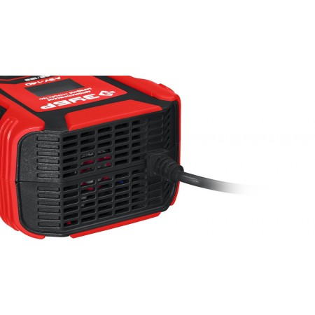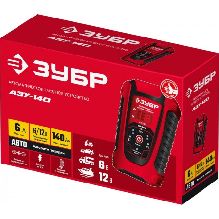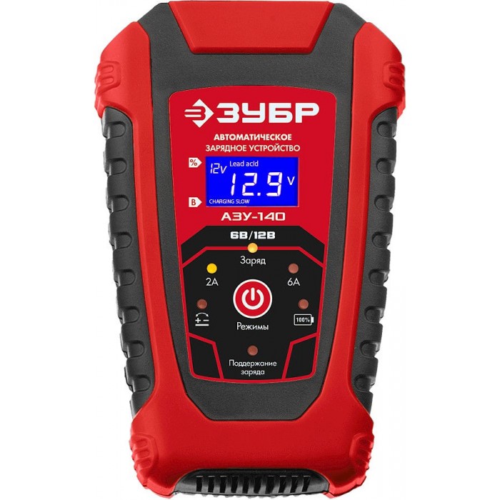 Автоматическое зарядное устройство предназначено для зарядки аккумуляторных батарей легковых автомобилей и мотоциклов, снегоходов, катеров (лодок), газонокосилок, тракторов, гидроциклов и т.д. Зарядные устройства ЗУБР управляются с помощью микропроцессора. Данные устройства обладают высокой эффективностью и имеют защиту от ошибок, которые может допустить пользователь. Микропроцессор зарядного устройства оценивает состояние батареи и соответствующим образом устанавливает силу зарядного тока и напряжение (в зависимости от типа АКБ и её состояния). Это позволяет наиболее эффективно зарядить аккумулятор и продлить срок его службы.
