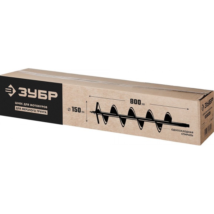 Шнек является сменным элементом для мотобуров ЗУБР. Он представляет собой винтообразный бур, который широко применяют для бурения скважин бытового назначения. Например, с его помощью можно бурить скважины для установки столбов. Благодаря винтовой форме шнек быстро проникает сквозь грунт и выбрасывает его наверх.