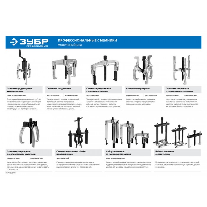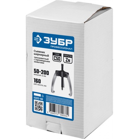 Съемник трехзахватный шарнирный с серповидными захватами d 50-200 мм Профессионал ЗУБР 43323-160