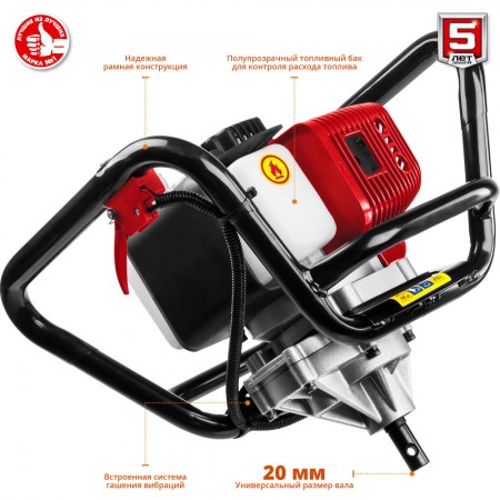 Простой и надежный мотобур для бурения различных грунтов и льда. Активно применяется в строительной и хозяйственной деятельности и позволяет сделать скважину качественно и в короткие сроки. Оснащен мощным 2-х тактным мотором и системой легкого запуска. Оперативная замена шнека позволяет легко адаптировать мотобур под решение разного вида задач. Прочная сварная рама, удобная для работы, обеспечивает дополнительную сохранность двигателя при работе.