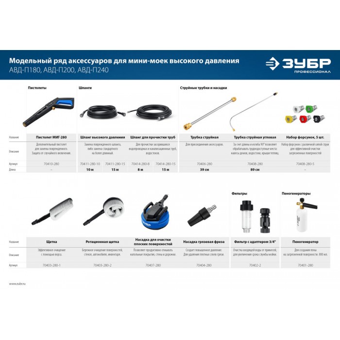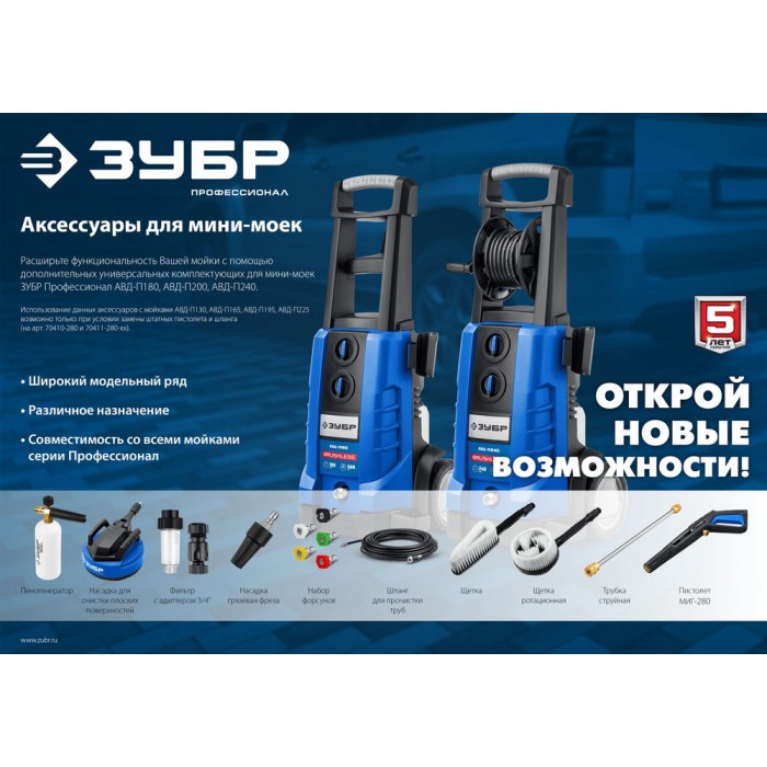 Качественные комплектующие для расширения функциональности моек ЗУБР