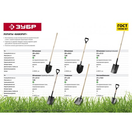 Штыковая прямоугольная лопата 310 х 215 х 1500 мм полотно 1.7 мм закалено дерев. лакир. черенок высш. сорт Профессионал ЗУБР Фаворит 4-39511