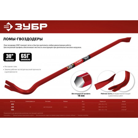 Профессиональный инструмент для демонтажных работ «ЗУБР» выдерживает длительные высокие нагрузки, обладает высоким ресурсом, имеет длительный срок службы и обеспечивает качественную работу.